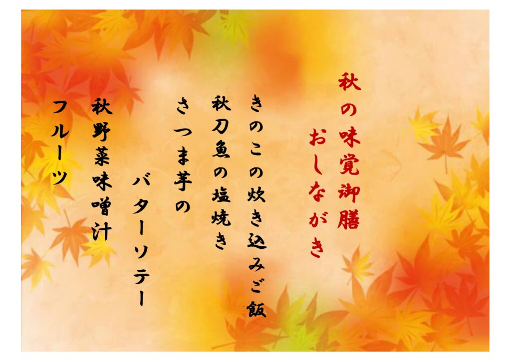 2025年秋の特別ランチメニューは、「秋の味覚御膳」で、11月21日(金曜日)です。