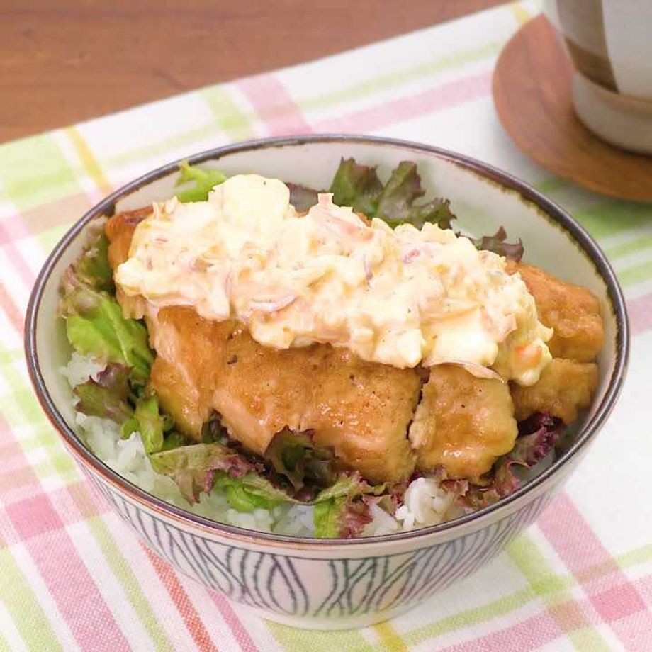 サクサクのカツに甘辛いタレが染み込んだカツ丼と、マイルドなタルタルソースの組み合わせが絶妙な一品です。