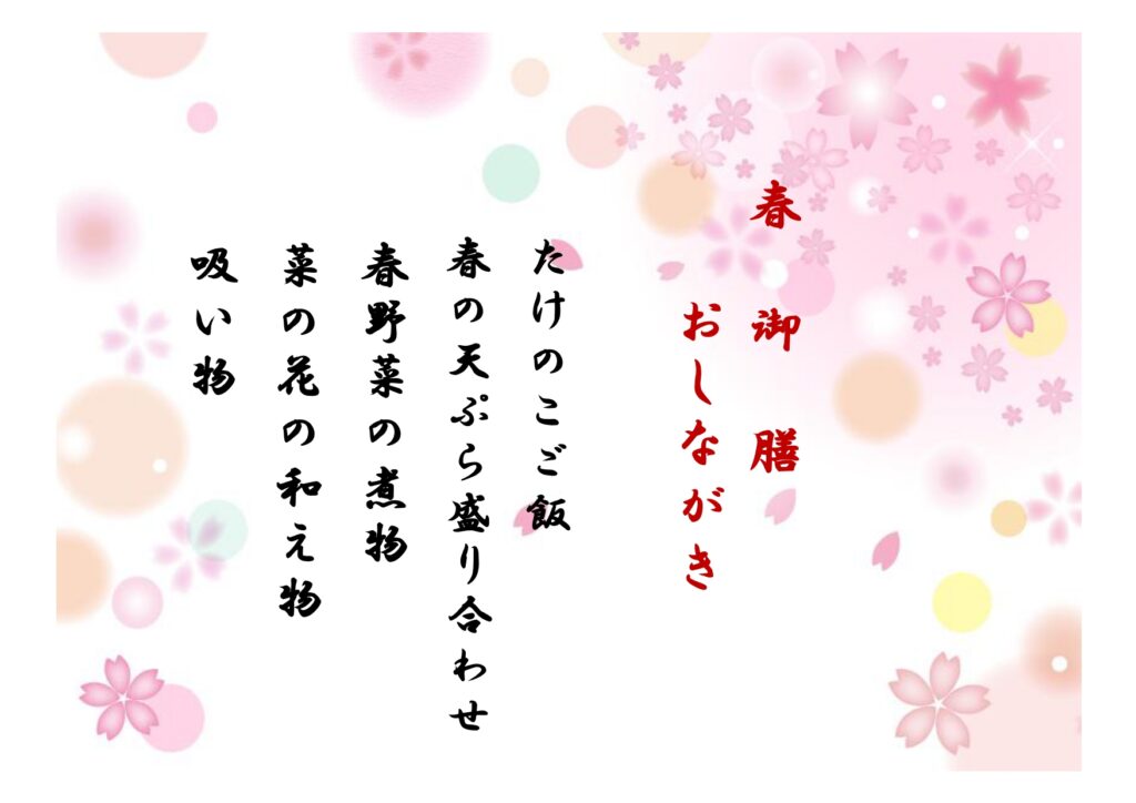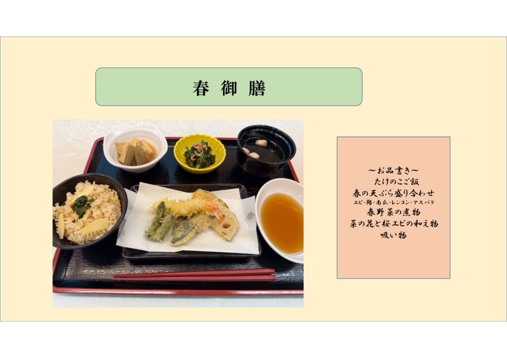 2026年3月春の特別ランチメニューは、「春御膳」で、3月23日(月曜日)です。