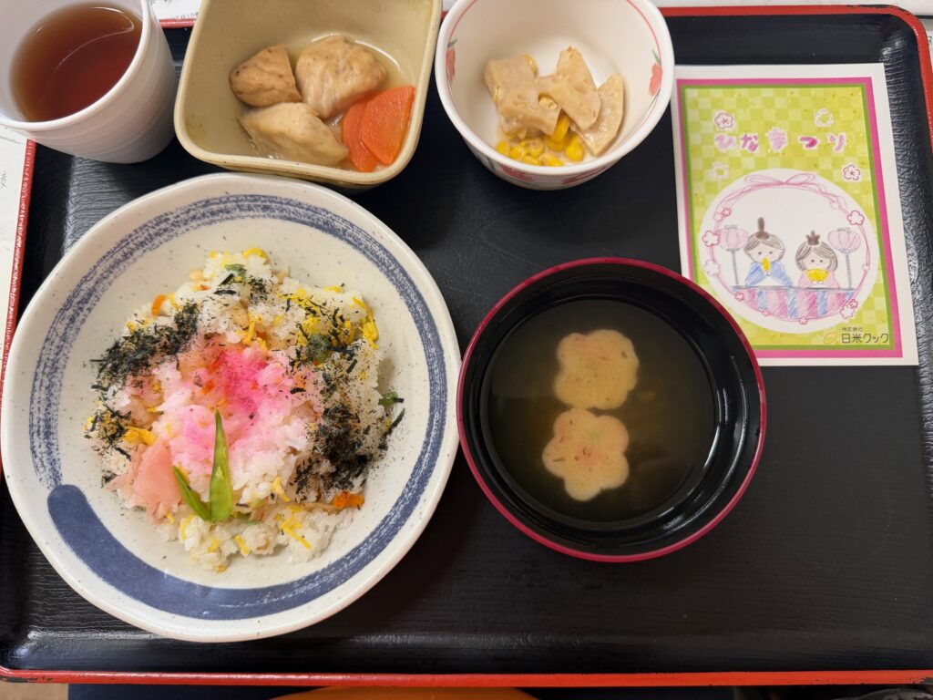 本日は「ひな祭り」ということで、今日のランチは、当館ランチメニューでも一番人気の「ちらし寿司」でした!